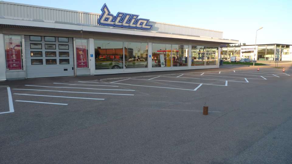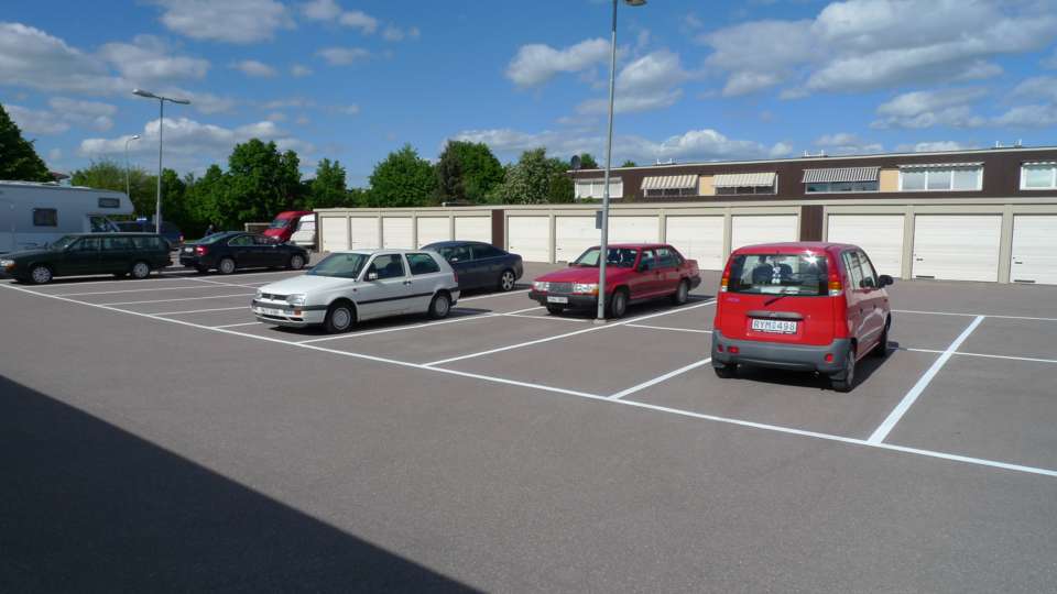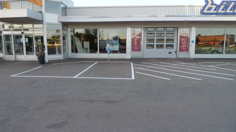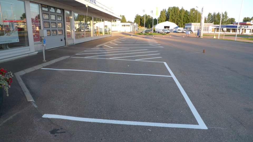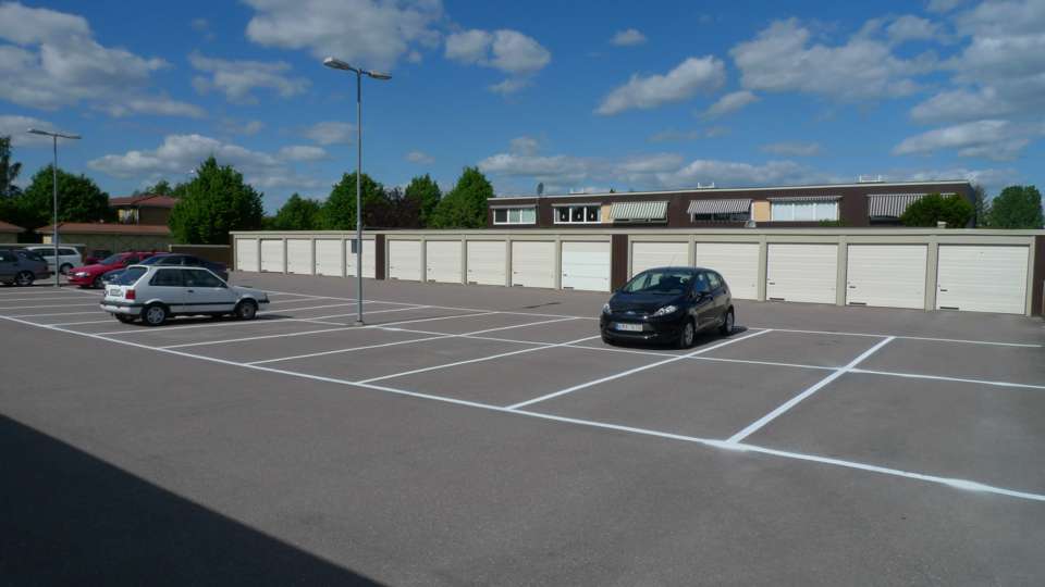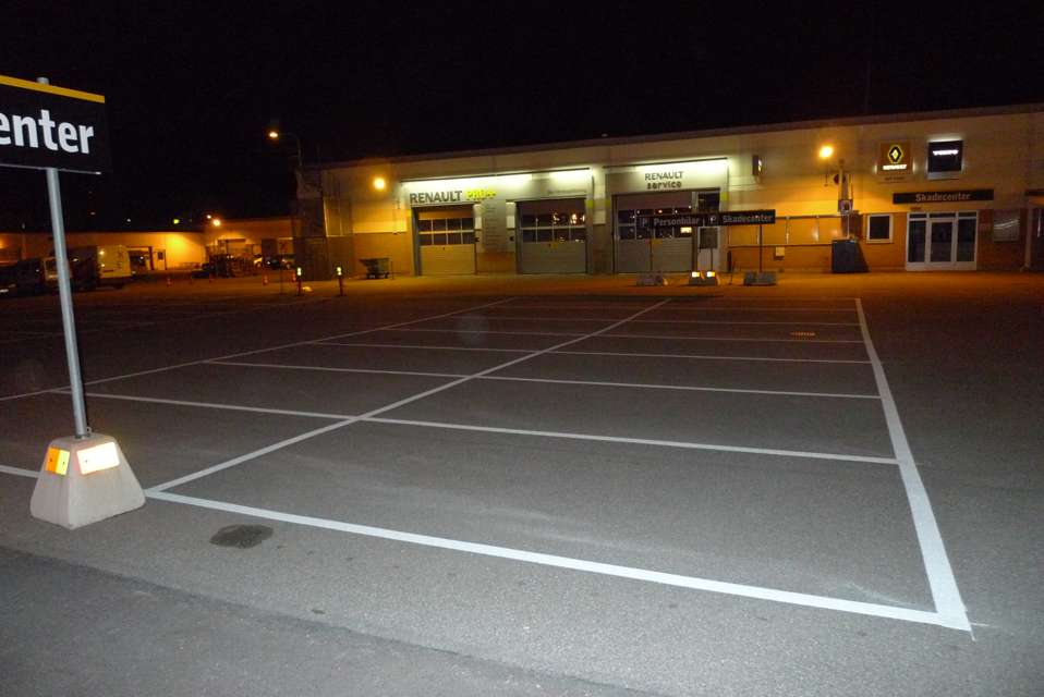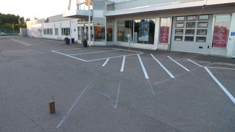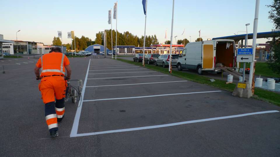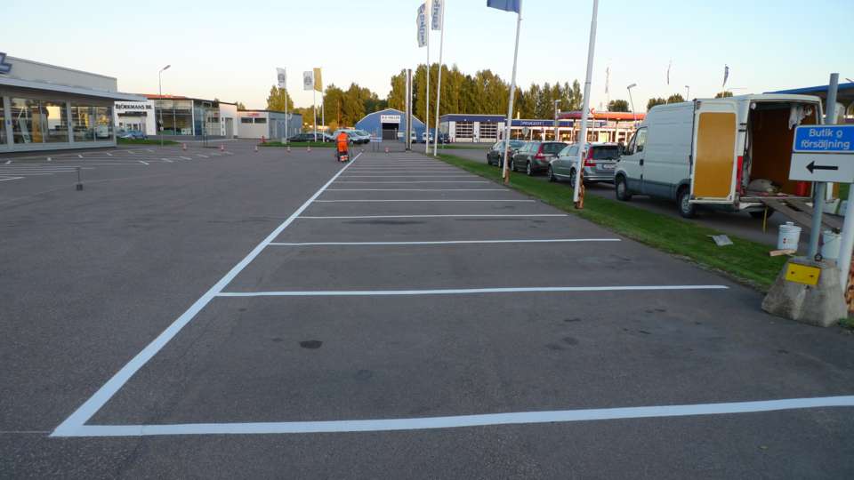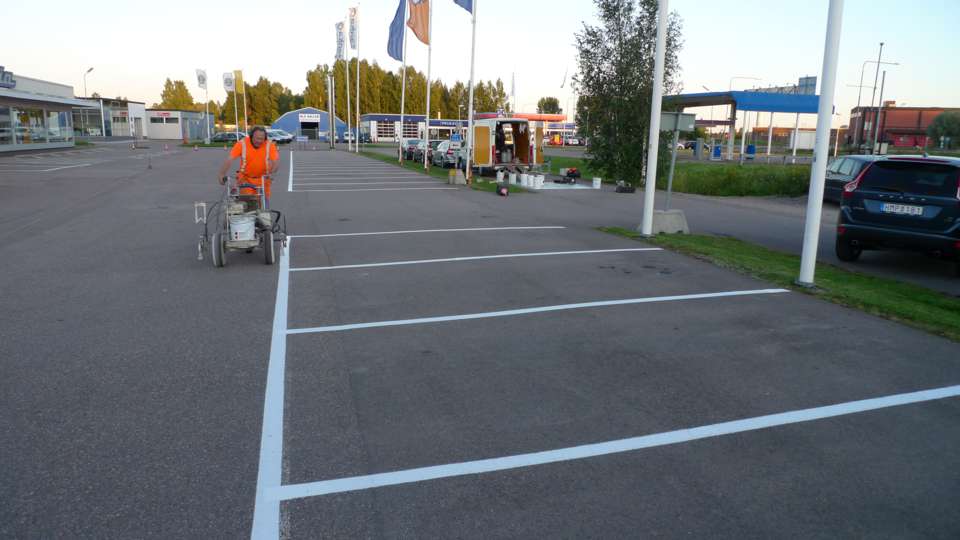 Målning raka parkeringar 15 lm 10 lm 7,5 lm 5 lm med trafiklinjefärg